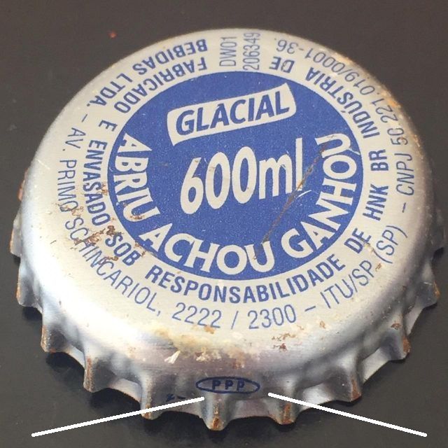 04152 - TAMPINHA DA CERVEJA GLACIAL 600 ML ABRIU ACHOU GANHOU - SIGLA PPP (código item:10731) |