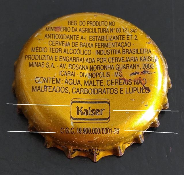 05347 - TAMPINHA DA CERVE KAISER CGC 19.900.000/0001-76 - SIGLA TAPON CORONA (código item:15740) |