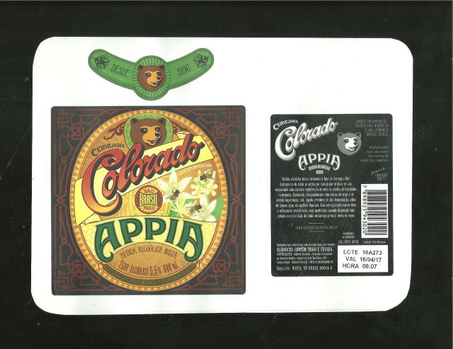 151/B - RÓTULO ADESIVO DA CERVEJA MARCA COLORADO APPIA ANO 2016 COMPLETO (código item:4544) |
