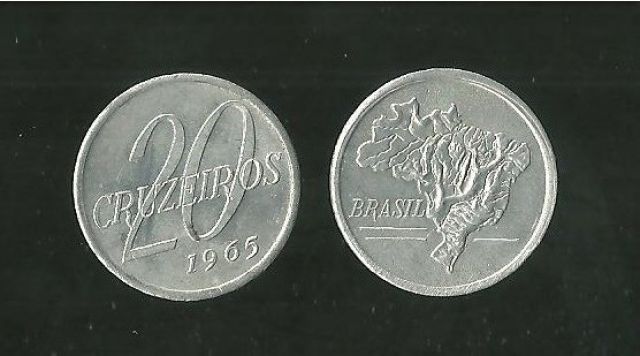 300 - MOEDAS BRASILEIRAS 20 CRUZEIROS REPUBLICA ANO 1965 - MATERIAL ALUMINIO (código item:4618) |