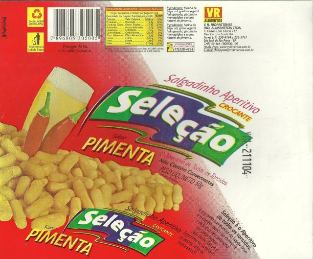 143 - EMBALAGEM DOS SALGADINHOS MARCA SELEÇÃO SABOR PIMENTA 50 G ANO 2004 (código item:5354) |