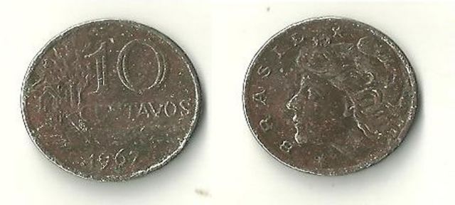 273 - MOEDAS ANOMALAS 10 CENTAVOS ANO 1967 ESCURA NO ANVERSO E REVERSO (código item:6086) |