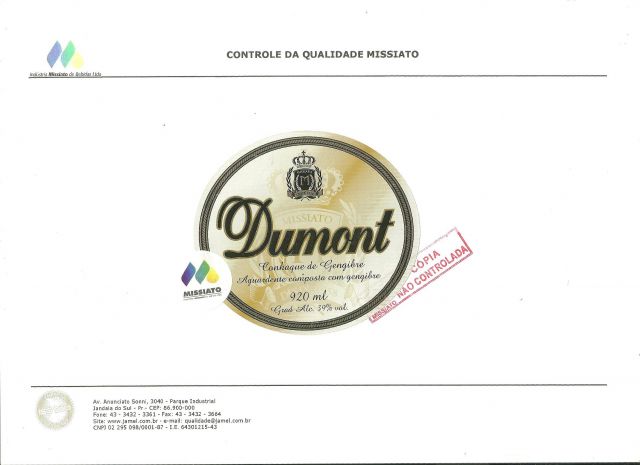 515 - RÓTULO DO CONHAQUE DUMONT COLADO NA FICHA DE CONTROLE FABRICANTE (código item:6498) |