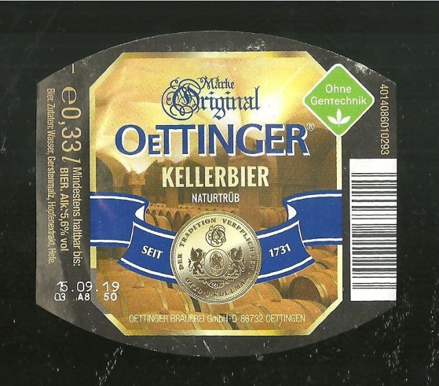 000102 - RÓTULO DA CERVEJA MARCA OETTINGER KELLERBIER - PAIS ALEMANHA (código item:9647) |